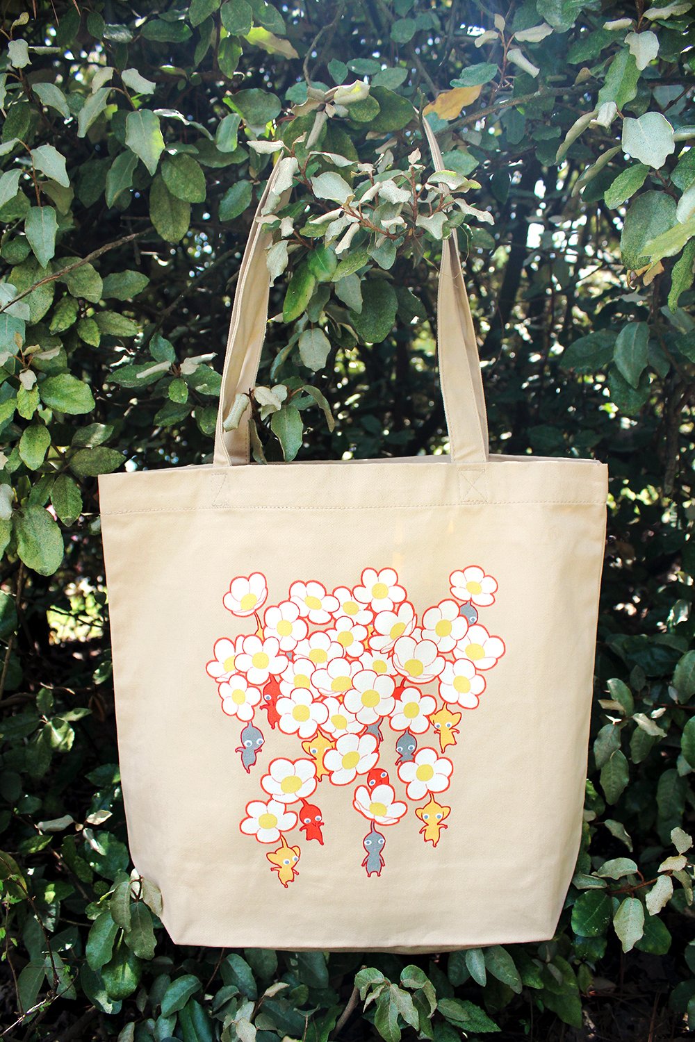 A playful, flowery design that's perfect for leaping into spring, printed on a sturdy organic cotton twill tote bag.